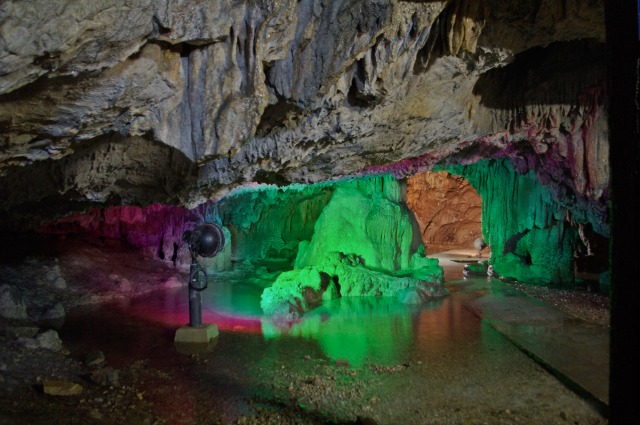 鍾乳洞で、こんな照明ってあまりない