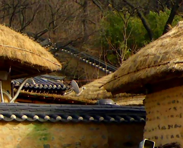 藁葺きの家にパラボラアンテナですもんねぇ、