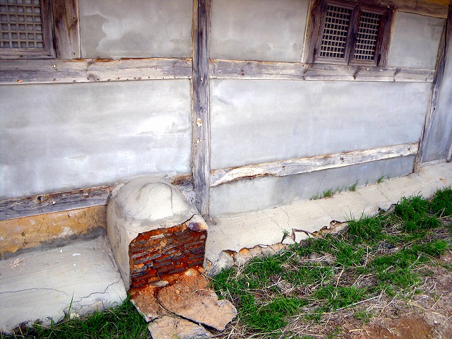 これはオンドル(床暖房)の焚口の跡です。