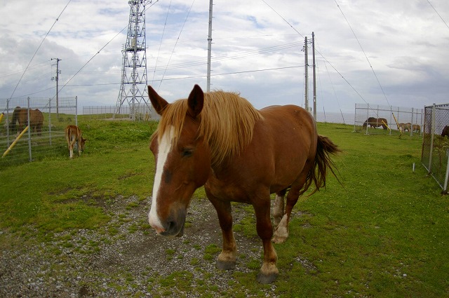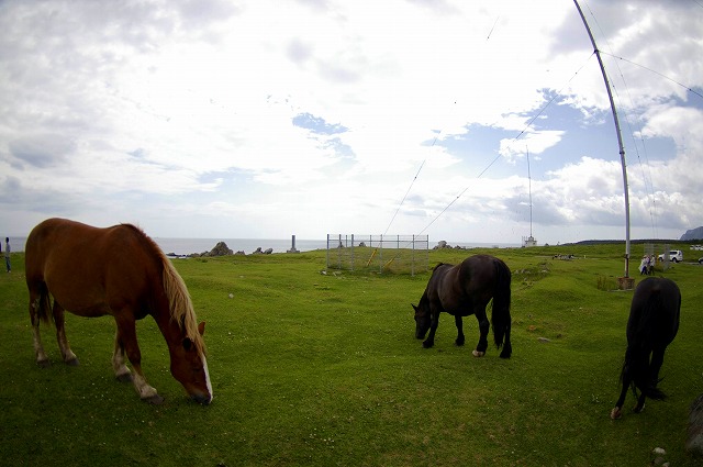 灯台の周辺では、『寒立馬』と呼ばれる馬が